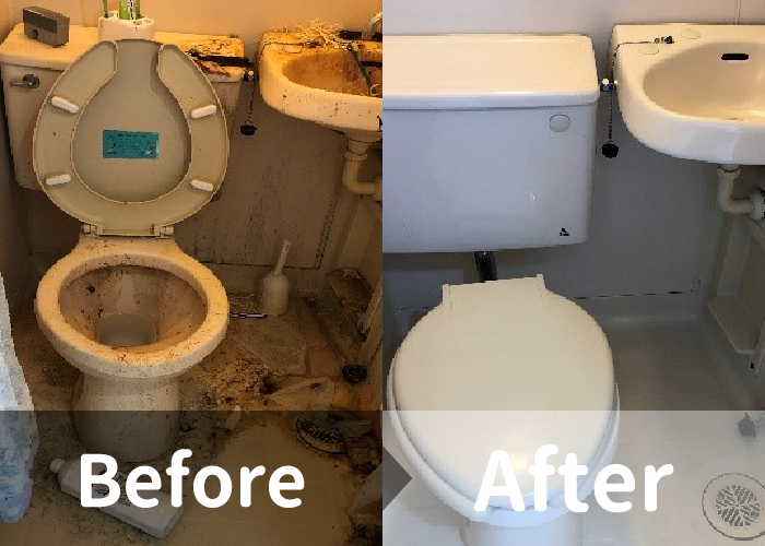 単身者の遺品整理トイレユニットバス、交換しないとダメかと思いましたが、新品のように綺麗にしてもらい、敷金が戻ってきました。